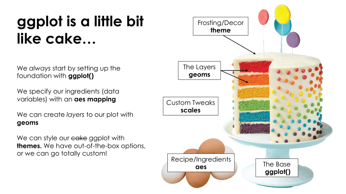 aes() can be defined for the whole plot or in the geomaes() are x and y (don’t need to name them if using them in that order)See extensions at https://exts.ggplot2.tidyverse.org/gallery/