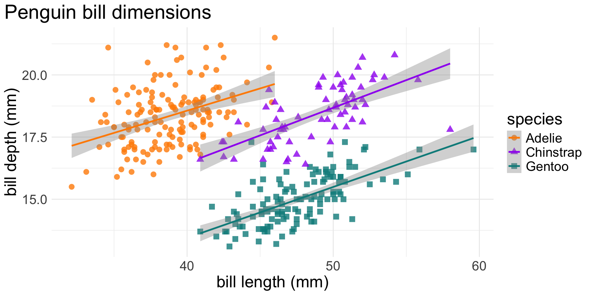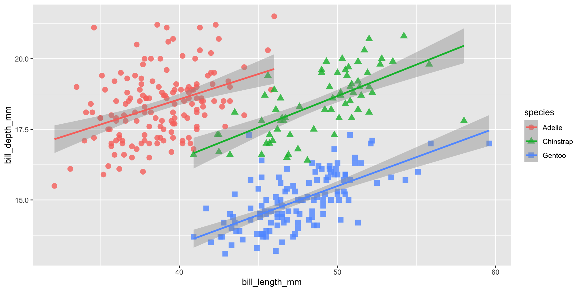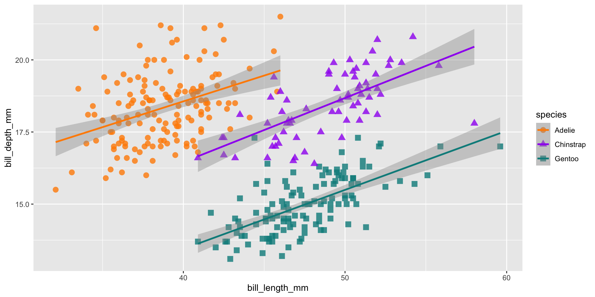 geom_smooth(method = "lm", aes(color = species)) +