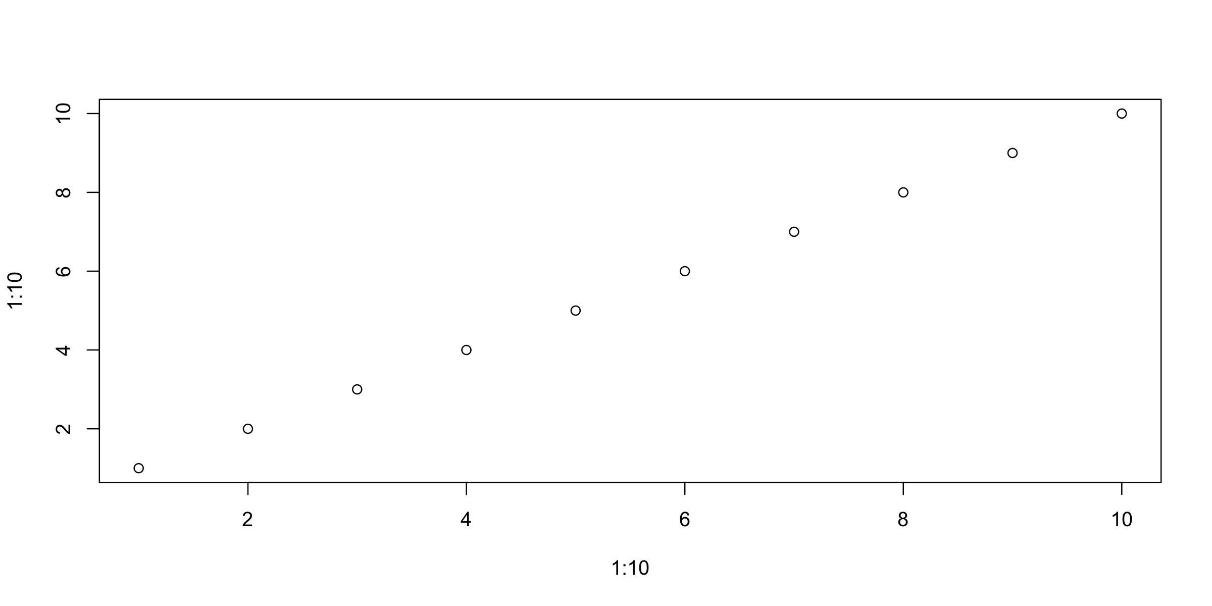 From the starting point of plot(1:10, 1:10), experiment with the arguments type and pch. See ?plot