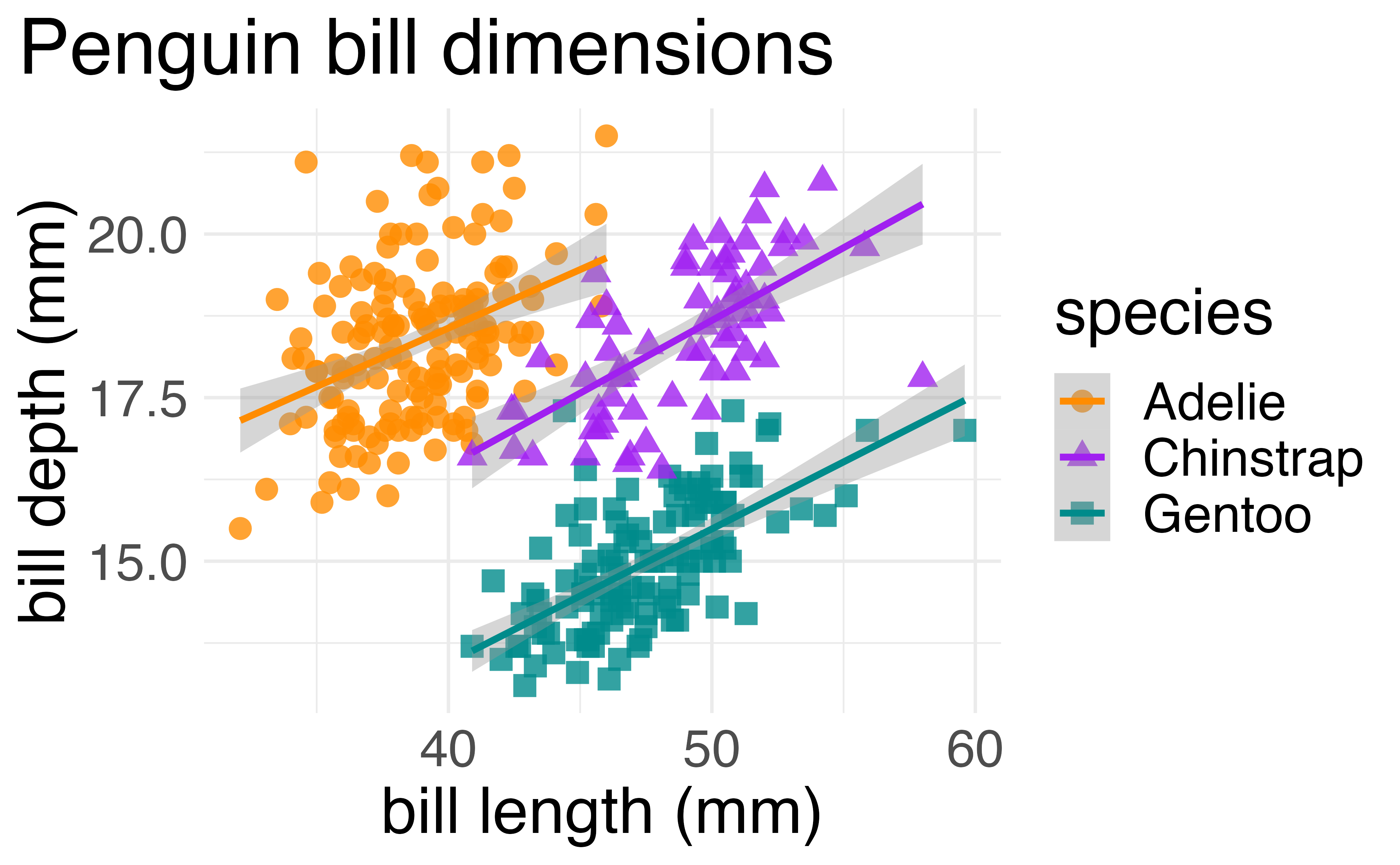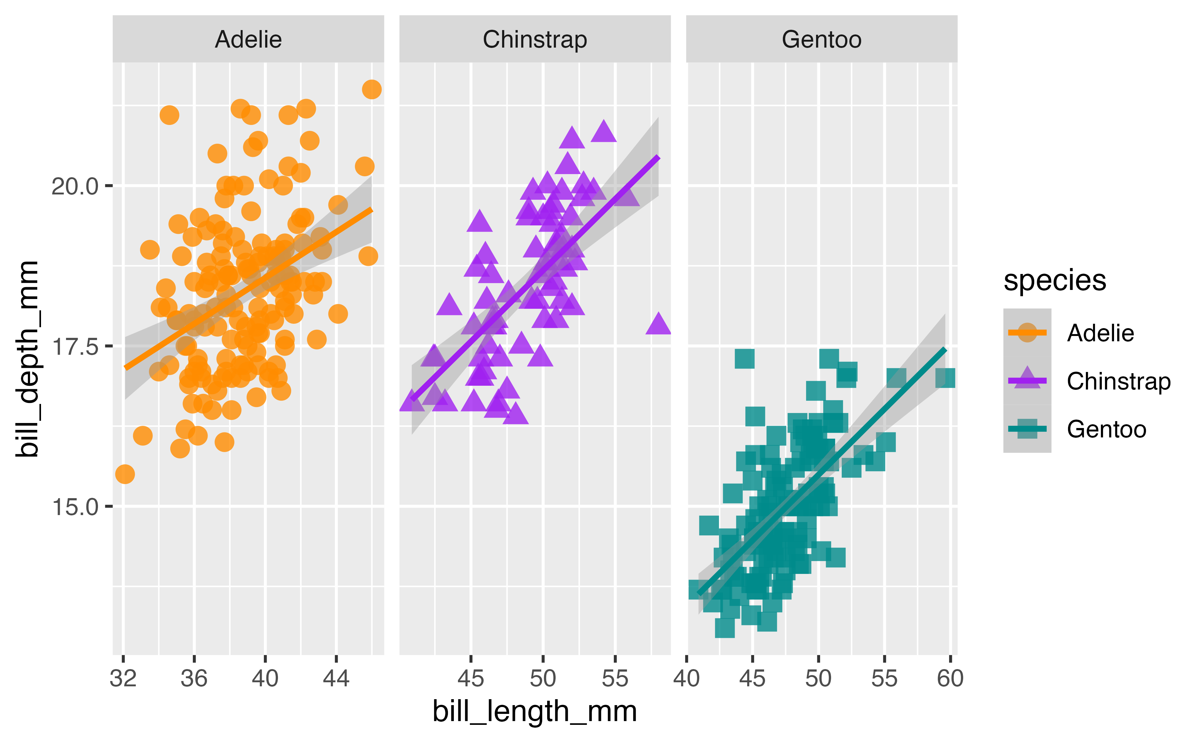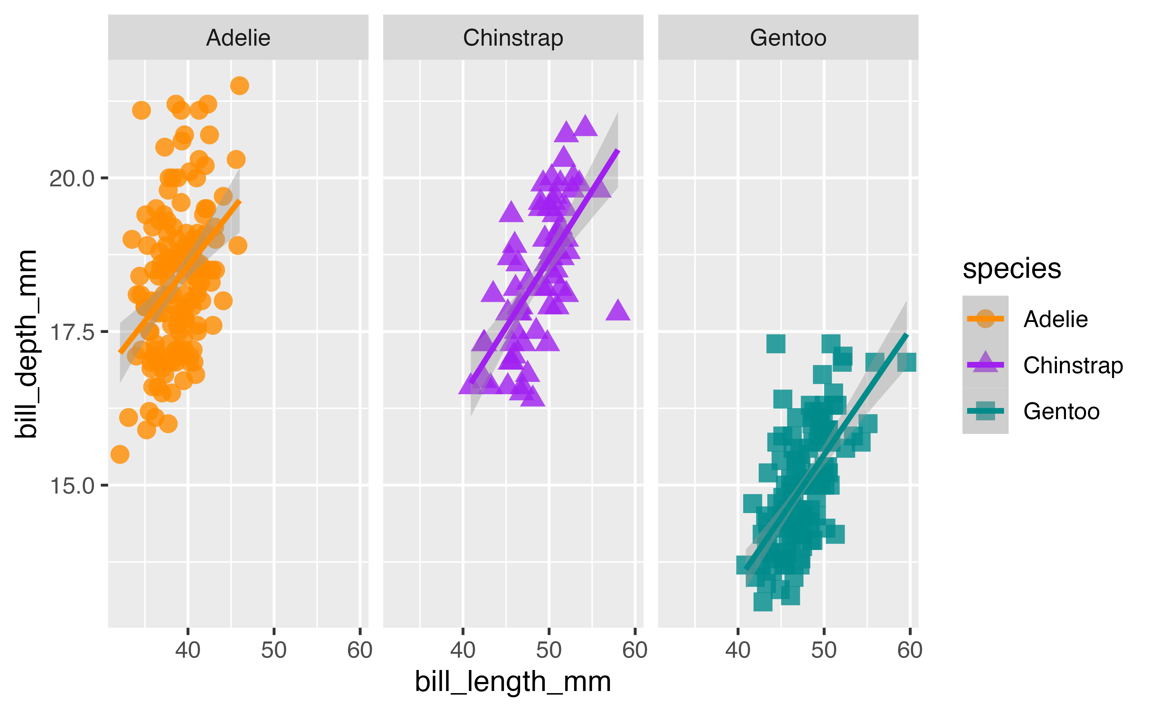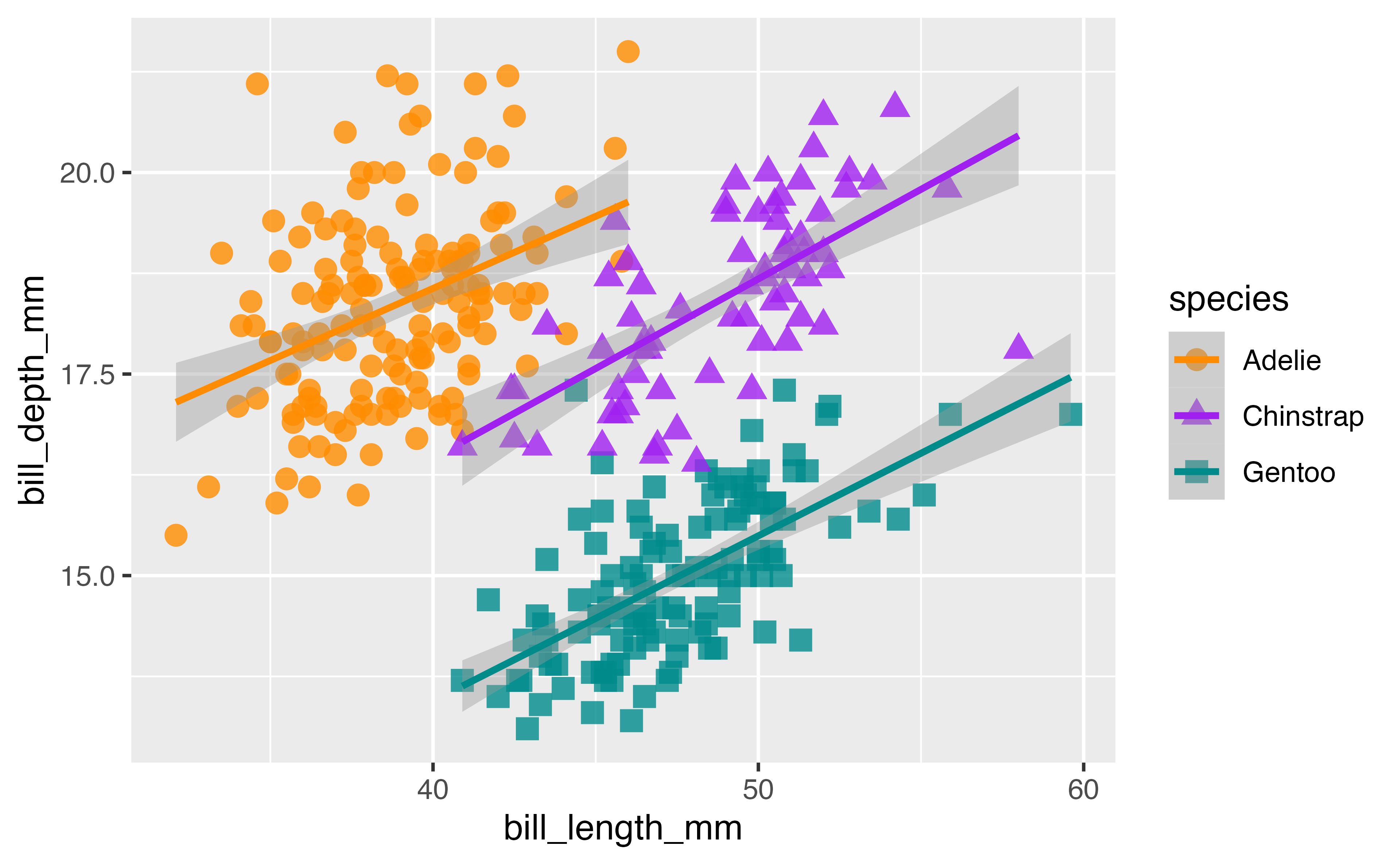 geom_smooth(method = "lm", aes(color = species)) +