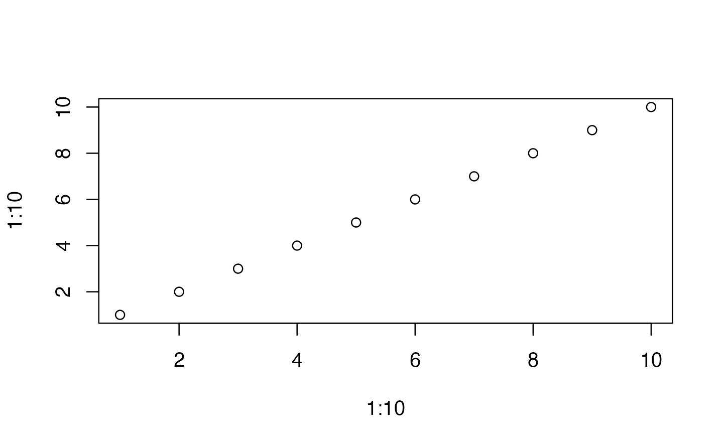 From the starting point of plot(1:10, 1:10), experiment with the arguments type and pch. See ?plot
